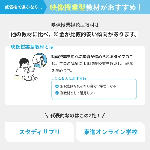 サブスクリプション型の教材が多く、 「スタディサプリ」(月額円)や 「東進オンライン学校小学部」(月額円~円)では、進学塾・予備校等で活躍する一流講師の映像授業を、家庭で好きなだけ視聴できます。